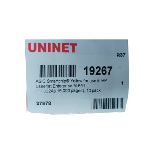19267 CHIP Yellow Amarillo para uso en HP Laserjet Enterprise M 651, M651, M654, HP LJ M680F, HP654A, (CF332A) M 651, M 654, HP LJ M 680 F, HP 654 A, (CF 332 A) M-651, M-654, HP LJ M-680-F, HP-654-A, (CF-332-A)