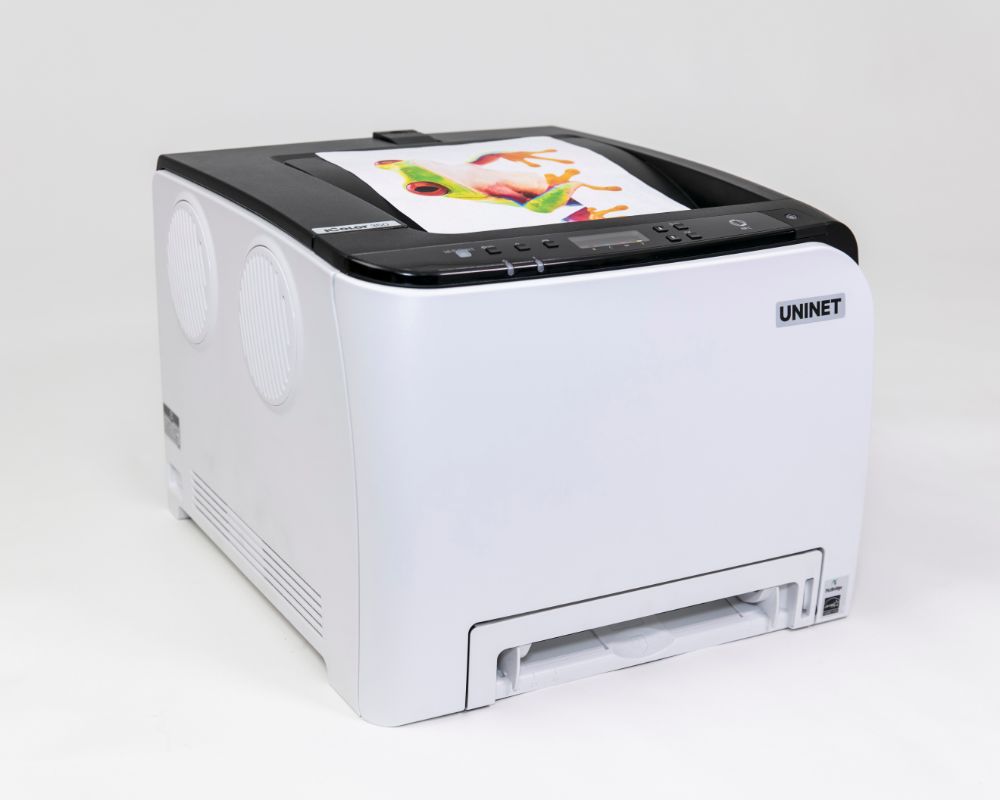 Impresora de transferencia por sublimación de tinta para la producción interna y bajo demanda de transferencias de prendas de vestir, textiles y superficies duras que ofrecen velocidades 40 veces más rápidas que los sistemas basados en tinta.